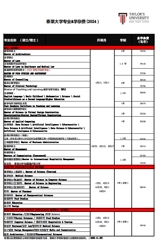 泰莱大学(简称:Taylor’s University或Taylor’s),建校于1969年,位于首都吉隆坡,是马来西亚历史悠久及最杰出的私立综合大学,2024年QS世界排名284,被评为马来西亚和东南亚顶尖私立大学,跻身于世界一流大学行列。泰莱大学是马来西亚学术声誉最好的私立大学,一直致力于学术质量的追求,与世界一流大学合作,为学生提供灵活完善的课程。